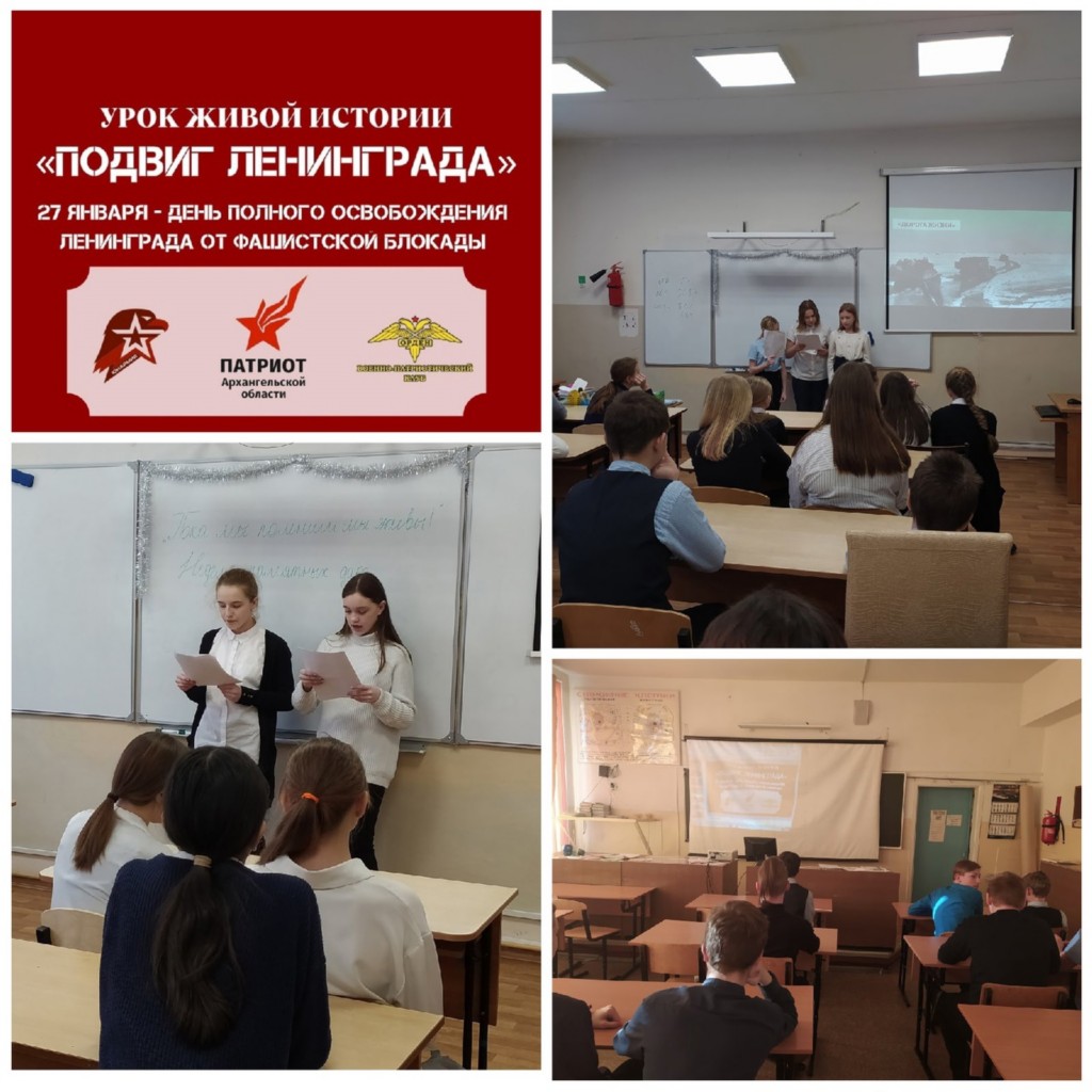 Урок живой истории "Подвиг Ленинграда", посвященный Дню полного освобождения Ленинграда от фашистской блокады, провели сегодня обучающиеся из волонтерского отряда школы и Совета обучающихся совместно с педагогами для 6а, 6б, 6в, 7а, 8а классов. Материалы урока вызвали искрений отклик у ребят.