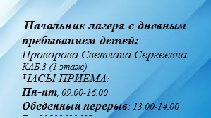 • В лагере организовано 3–х разовое питание. Подробности по телефону 89509623687 - Светлана Сергеевна (начальник лагеря).