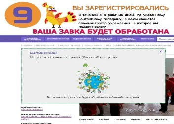 6. Определившись с выбором, нажмите кнопку ЗАПИСАТЬСЯ. Пройдите все предложенные шаги. После того, как ваша заявка будет принята, с вами, в течении 3-х рабочих дней, должен связаться администратор организации дополнительного образования, в которую вы подали заявку.