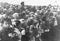 Педагогов, родителей, детей сдружил совместный труд по благоустройству и озеленению школы. За сентябрь-октябрь 1964 года было посажено около 600 деревьев и кустарников. Школа стала победителем Ленинской Вахты труда. |